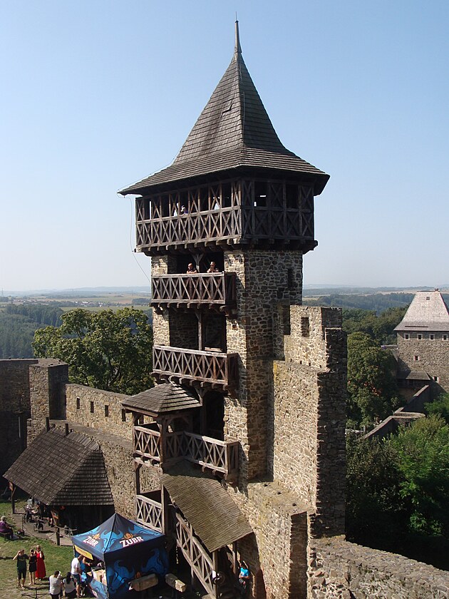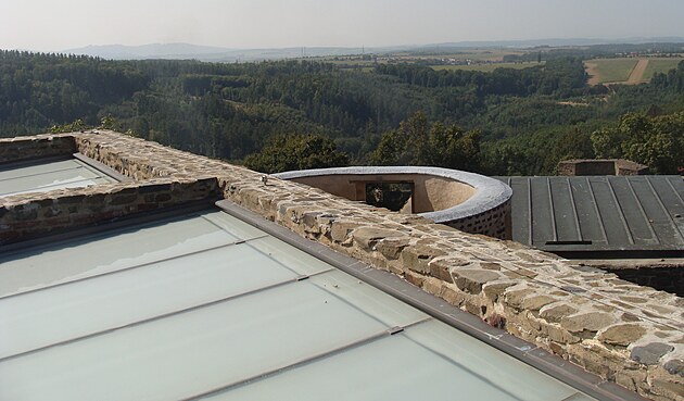 Z této věže je pěkná vyhlídka do kraje. Vyhlídka je i z dalších míst.