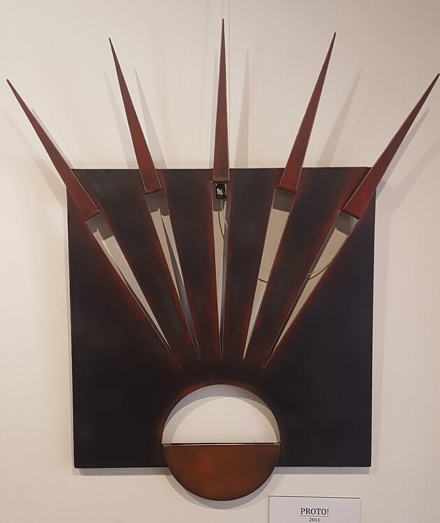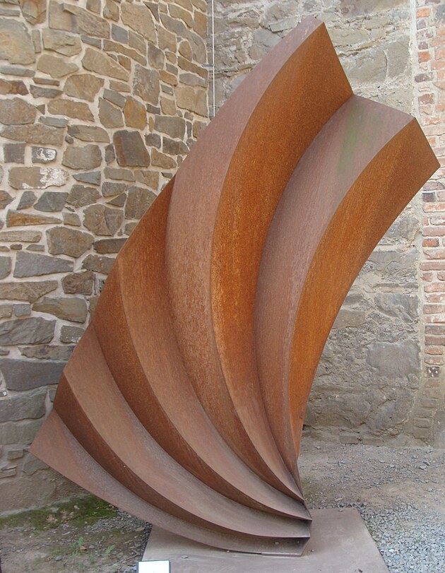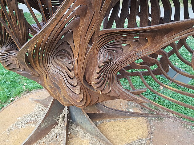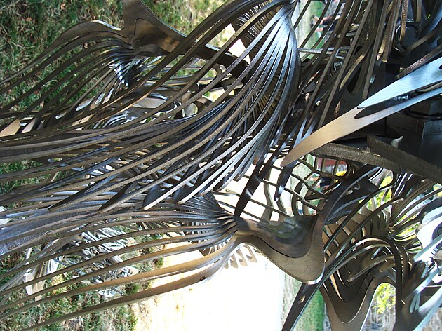 Na detailu je vidět, že autor opět vyšel z plechu o tloušťce asi 3 mm a řezáním vytvořil štíhlá žebra, která byla následně ohýbána. Na této plastice je vidět další novinka: byla vyrobena z nerez oceli.