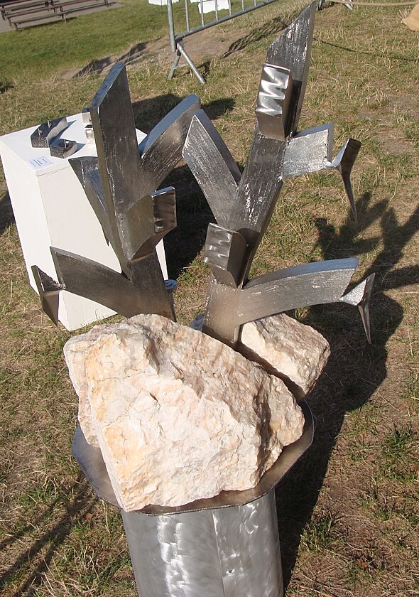 Další obrázek ukazuje příklad plastiky vyrobené svařením většího množství běžných součástek, což je v posledních letech často používaný postup. V tomto případě autor použil podložky pod matice šroubů.