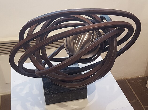 Nerez ocel byla použita na více plastik. Zde je kružítko, které v umělcových očích dělá piruety na papíře.