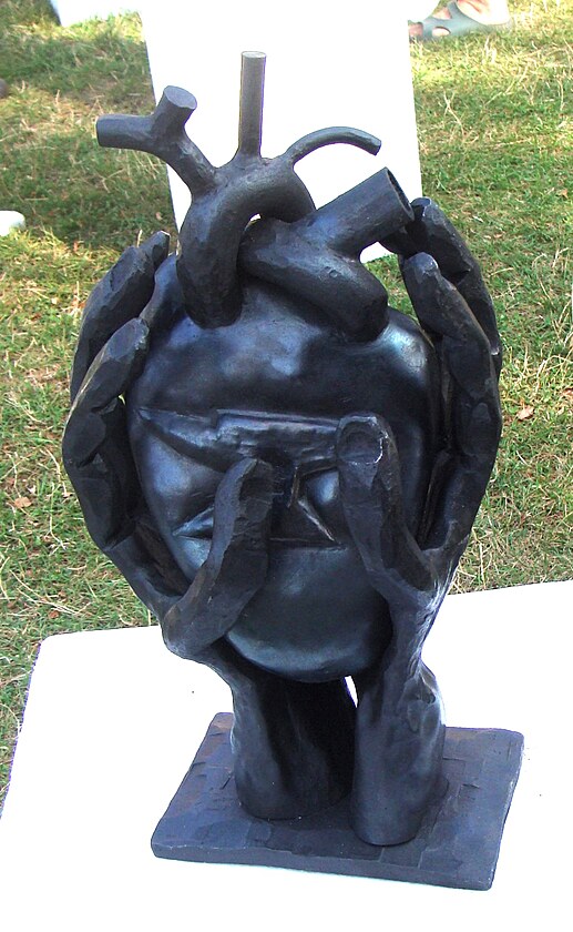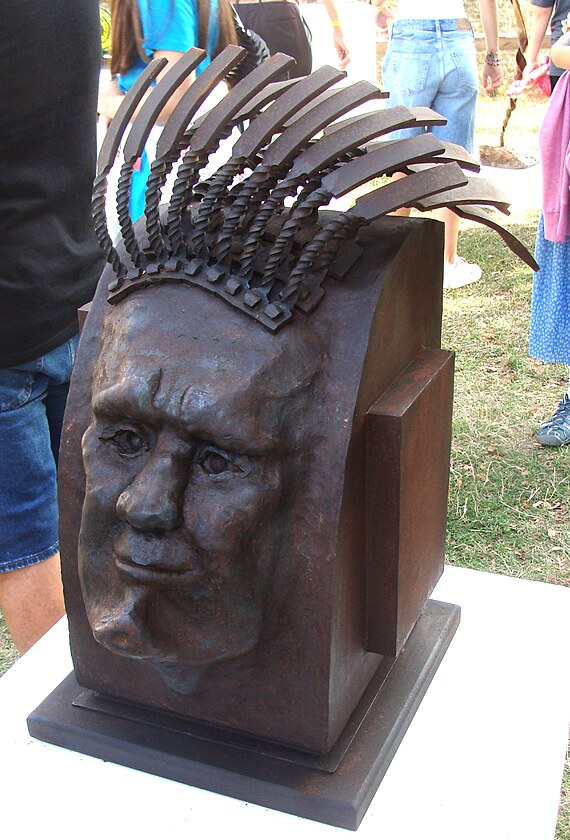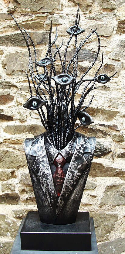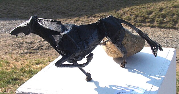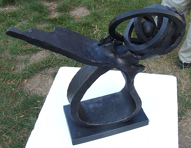 V Ostravě máme v Komenského sadech plastiku od stejného autora. Na detailu je vidět způsob jeho tvorby.