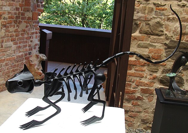 Zpět však na Helfštýn. Na prvním hradním nádvoří dominovala plastika Dračí máma od stejného autora.