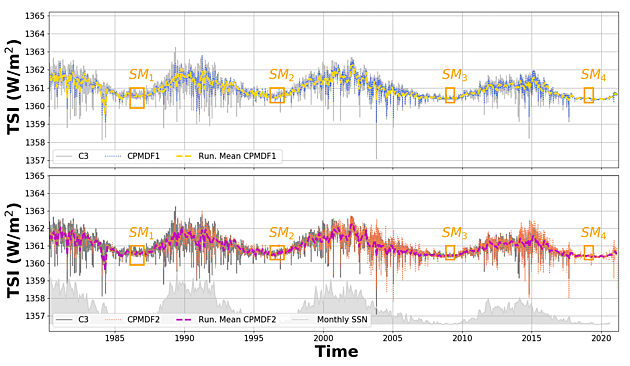Zdroj: PMOD WRC, Davos, https://www.pmodwrc.ch/en/research-development/solar-physics/tsi-composite/, vysvětlivky v odkazu