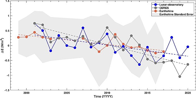V rámci projektu CERES bylo zjištěno, že planetární albedo Země klesá, což bylo potvrzeno i dalšími metodami: