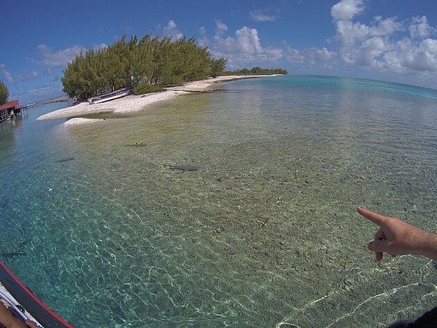 Když jsem vídal fotky z lagun atolů Francouzské Polynésie, černocípáci byli vidět všude, ale až do teď jsem pochyboval, že je opravdu uvidím na vlastní oči. Teď jsem pochopil, že jsem si destinaci opravdu vybral dobře. Tohle nebylo žádné náhodné setkání. Oni tu prostě žijí v těsné blízkosti lidí a budou tu s námi pořád. To všechno se mi honilo hlavou a já zběsile mačkal spoušť kamery, jako bych se bál, že žraloci zmizí a už se neukážou.