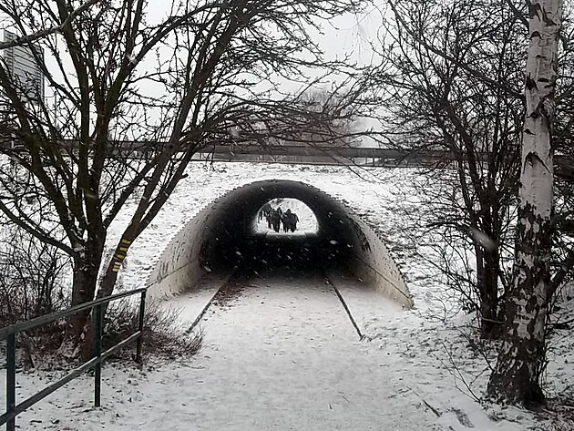 Odtud jsme se všichni vydali po žluté turistické značce do Mníšku pod Brdy. A to i tímto tunýlkem, který vede pod dálnicí.