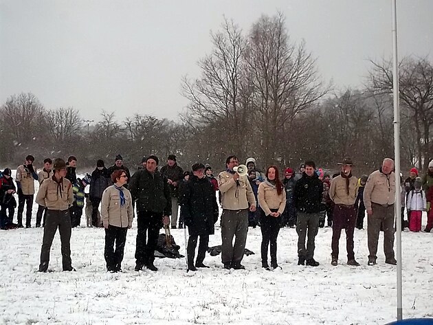 A byl tu také přivítán i nejstarší český skaut Eda Marek s přezdívkou Hroznýš (pán v černém uprostřed. Tento muž prožil krušný život. Byl například vězněn za 2. světové války za pomoc svému židovskému kamarádovi. A po komunistickém převratu byl odsouzen za údajnou protistátní činnost. V komunistických lágrech, včetně těžby uranu, strávil celkem sedm let. A i přesto všechno by mu dnes nikdo nehádal jeho úctyhodných 101 let. (viz http://ttps://krizovatka.skaut.cz/zpravodajstvi/3110-bratr-eda-marek-hroznys-dnes-slavi-100-narozeniny-gratulujeme?autologin=1)