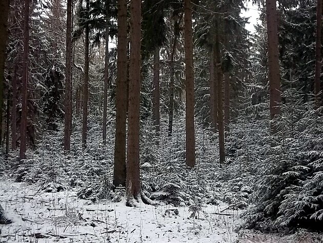 Konečně jsme v lese. A tady bylo vidět, jak čerstvě napadaný sníh proměnil zdejší přírodu doslova v pohádku.