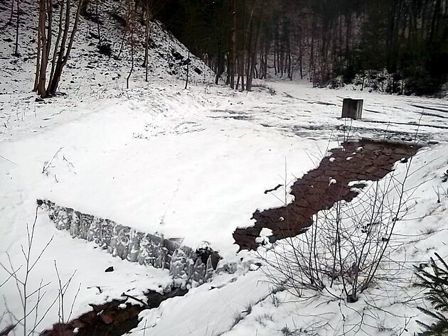 A pod ním další jezírko se zamrzlým splavem. Já jsem se tady odpojil od ostatních, protože jsem potřeboval chytit o něco dřívější vlak.