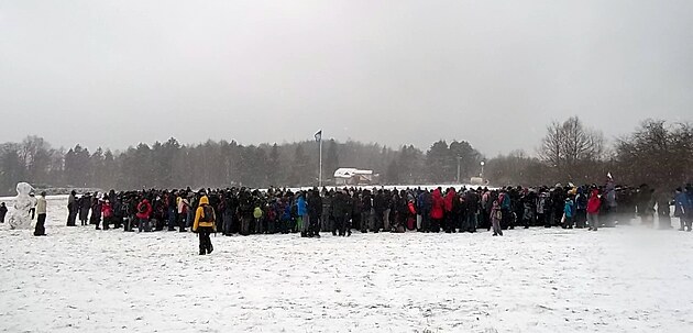 Došli jsme až k zamrzlému Zámeckému rybníku. A jeho led využívali jak místní děti, tak účastníci pochodu.