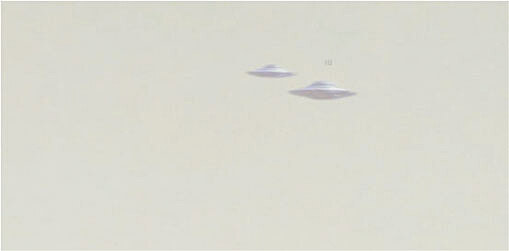 Co mě však jakožto zájemce o záhadné věci nejvíce uchvátilo, je informace, že se na obloze podařilo nalézt letící UFO v podobě dvou létajících talířů. V článku se bohužel přesně nepíše, kde. Ovšem to mě v žádném případě nevadí, prostě jsem se pustil do hledání sám. A věřte nebo ne, skutečně jsem je nalezl. A tak si je zkuste nalézt také. Pokud je nenaleznete, tak jsou v pravé části snímku, a to v místě, které jsem na fotografii označil obdélníčkem.