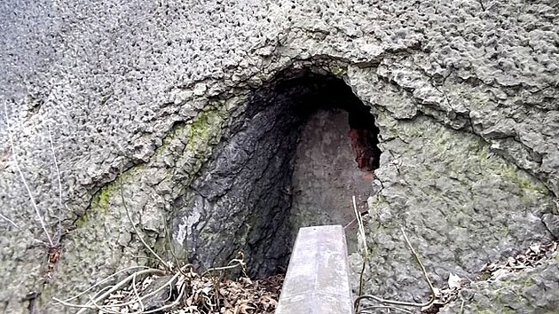 Ale vchody do ní jsou tu patrné i dnes. Tento zazděný vchod jsem například objevil za kostelem sboru Českobratrské církve evangelické.