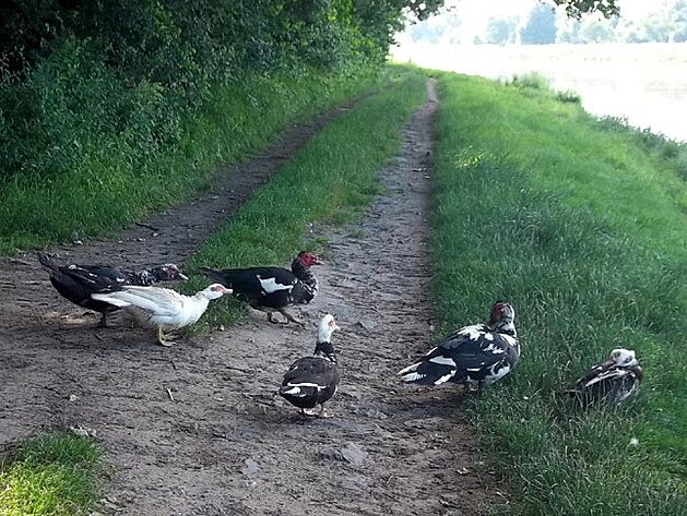 Jak jsem jel dál, dokonce mi cestu překřížilo menší stádo jakýchsi okrasných kachen. A tak jsem si je vyfotografoval.