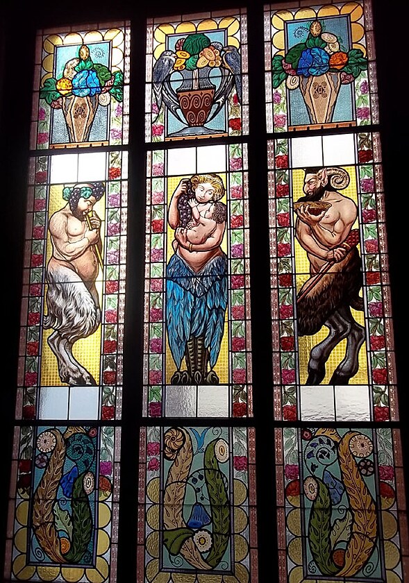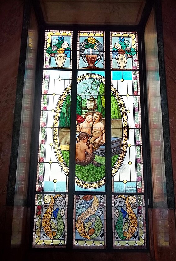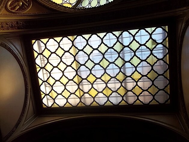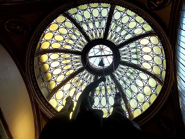 Hned nad koněm je možné spatřit vitrážová střešní okna.