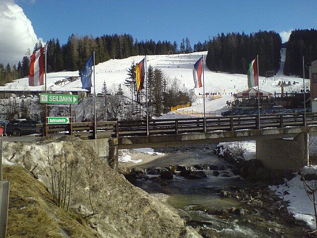 Na příjezdu ke spodní stanici lanovky je možné spatřit vedle vlajek Rakouska, EU, Německa a Maďarska i vlajku České republiky