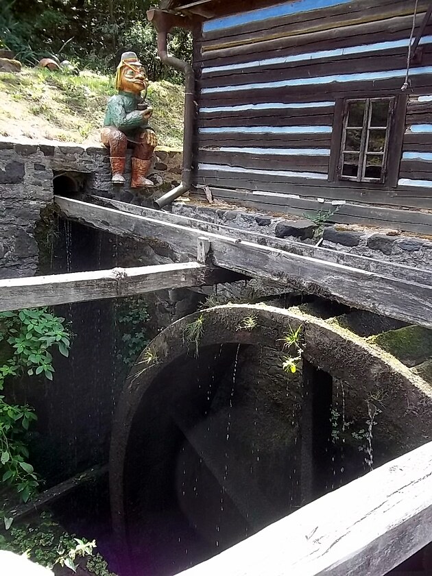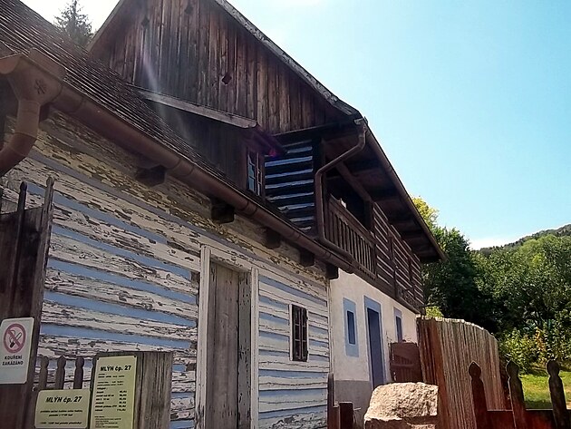 A tady jsem u roubeného mlýna č.p. 27. Je to unikátní mlýn na horní vodu. A ten tvořil i jednu z kulis pohádky Dešťová víla.