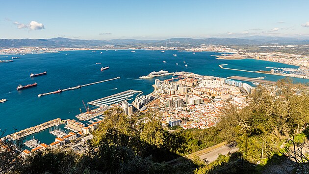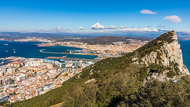 V blízkosti horní stanice lanovky je i skutečný vrchol Skály. Ten ale nezdoláme. Je ve vojenském pásmu. Vzhledem k silnému větru máme co dělat abychom udrželi rovnováhu i na vyhlídkových plošinách, opřeni o zábradlí. Výhledy jsou úžasné. Směrem k pevnině typická, šikmá, vápencová skála, ozdobená řadou telekomunikačních a vojenských zařízení. Přístav Gibraltar s jachtami i velkými výletními parníky, a především Gibraltarský záliv nebo také záliv Algeciras. Obojí je správně. Je pozoruhodné, že i dnes trvá spor mezi Španělskem a Británií komu že ty vody vlastně patří. Dle Utrechské smlouvy (1713) byl Británii postoupen Gibraltar - pevnina a přístav, ale bez nároku na teritoriální vody. Britové si ovšem myslí že ten nárok mají, a to, jak je běžné, do vzdálenosti 3 námořních mil od břehu, což je někde v půlce zálivu. Vzájemně si tu a tam zatýkají rybáře a dělají naschvály. A to je Británie ještě pořád členem EU. Zajímavé bude co bude až jím nebude.