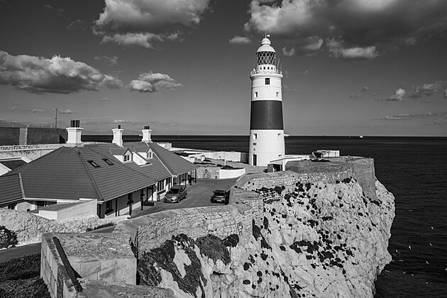 Přijíždíme na nejjižnější bod Gibraltaru - Europa point. Pohledný maják Trinity Lighthouse je jako z pohádky. Celá oblast je nezastavěná a je místem výletů a her místních obyvatel. Při pohledu na jih vidíme, byť nepříliš ostře, ale přece, africké pobřeží. Na zábradlí vyhlídkového místa sedí černoch, černý jako krém na boty, žmoulá bagetu a zadumaně hledí do dáli přes moře. To by byla fotka, to vyznění, ten popisek, už to vidím. Nebude. Nejsem populista. No a hlavně, poučen z rána, nemám odvahu vstoupit do děje.