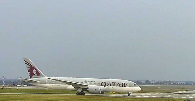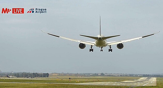 ... obr. 4/Přistání Boeingu 787 Dreamliner z Dauhá. (Zdroj: MALL.TV/Slow TV s jejich laskavým svolením.)