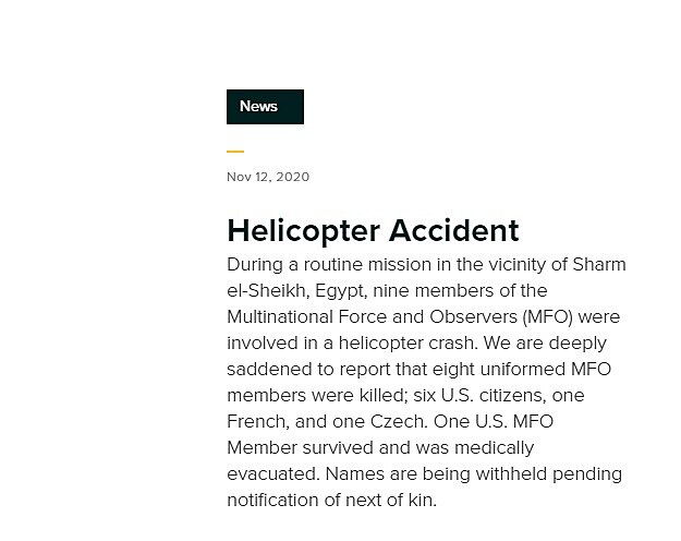 ... aktualizovaná zpráva na webu Mnohonárodnostních sil a pozorovatelů MFO, 12. 11. 2020, čas 15:53 SEČ. (Zdroj: Web MFO)