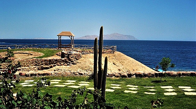 ... pohled na ostrov Tiran ze Sinaje. (Foto: Autor článku)