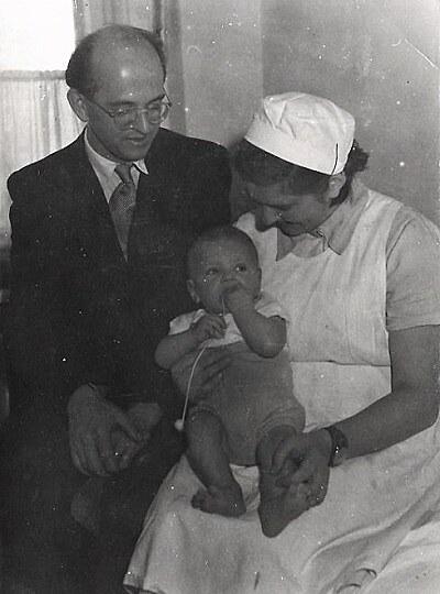 ... a tady je moje maličkost. S rodiči. Mateřská byla tehdy krátká, a tak se maminka brzy vrátila do práce v nemocnici. Kdo to fotil, to už si vážně nepamatuju, ale snímek je z rodinného archivu. Tak snad neporuší pravidla o autorských právech.