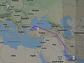 Zpět do Istanbulu, jak je patrné z dalšího screenshotu webu Flightradar24.com:
