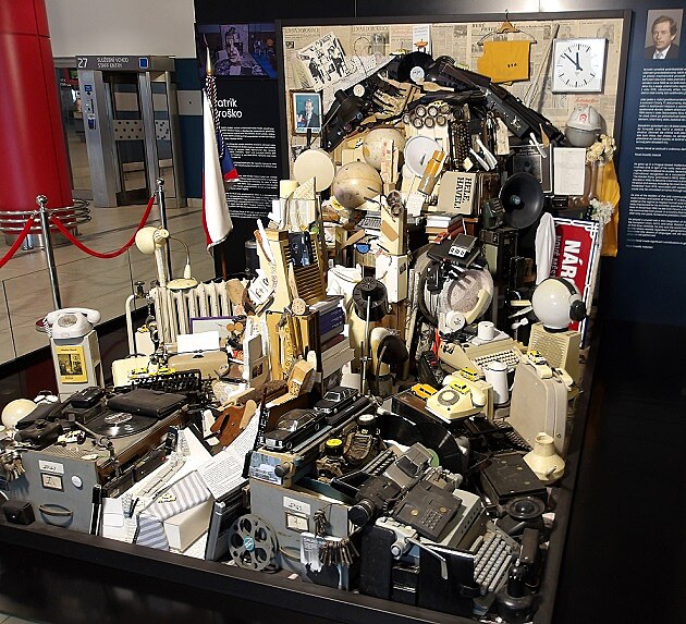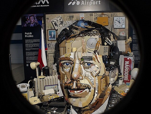 ... na letišti jsem se nejprve posilnil v samoobslužné restauraci Runway vydařeným borščem a pak se vydal na krátkou prohlídku haly. V přízemí Terminálu 2 se nachází unikátní expozice - anamorfní portrét Václava Havla. Na první pohled jde o volně poskládané stovky nejrůznějších předmětů. Všechny ovšem souvisí s Havlovým životem. A nejen to.