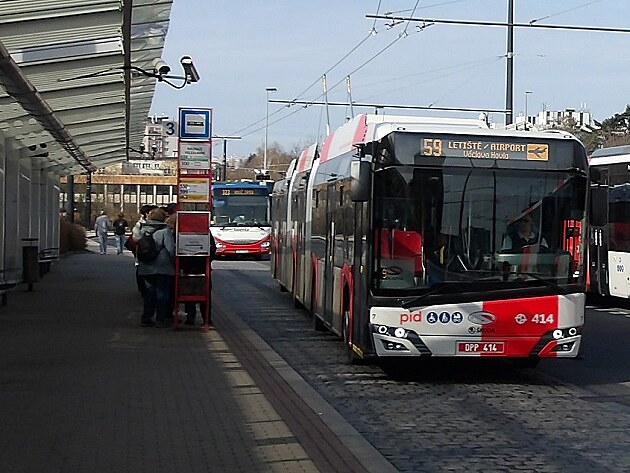... trolejbus na zastávce letištního Terminálu 1. Zde pozor. Po příjezdu na Terminál 1 pokračuje vůz k Terminálu 2, ale dál nejede zpět do centra Prahy. Pokud byste přicestovali letadlem a chtěli pokračovat dál do Prahy trolejbusem 59, musíte použít sousední zastávku (blíž k Terminálu 2 - vše je řádně označeno).