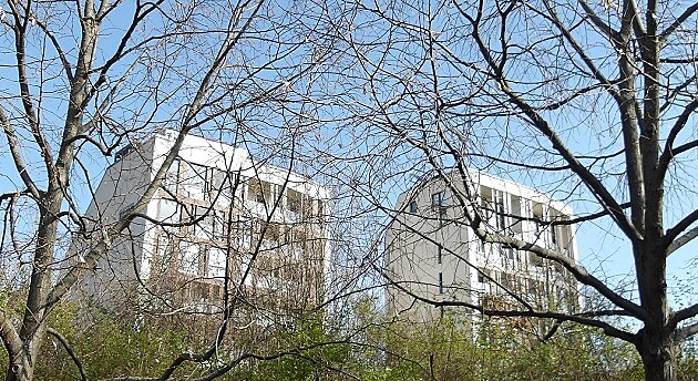 ... poblíž stanice metra Strašnická mě zaujaly dva bytové domy - paneláky pro 21. století. Ano, jde to i jinak.