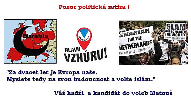 Pozor: tohle je satira a citát pana Matouše není originální, ale takhle možná jednou budou vypadat volby v Čechách a na Moravě až tu bude dostatečně silná muslimská menšina: