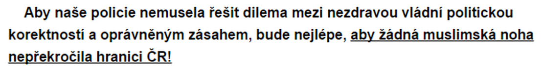 Ale Islám v ČR nechceme a také bude nejlépe, aby žádná muslimská noha nepřekročila hranici ČR.