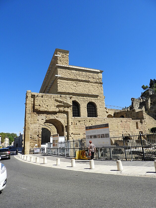 Směřovali jsme už do "cíle" naší cesty, do Provence. Do blízkosti měst Cavaillon a Sant Andiol. Na ta ještě dojde, teď jsme se sotva vymotali zatáčkami a motačkami z podzemní garáže, najíždíme na další úsek dokonalé francouzské dálnice, kde (jinde rozverně velkorysí) řidiči jezdí ukázněně a v případě komplikací vzorně zpomalí celá silnice, což nejspíš není dáno ukázněností francouzských řidičů, ale výší pokut. Božence přede motor a my si v autě děláme pořádek v informacích. Ještě se totiž cestou zastavíme v Orange. Během kratičké doby tak budeme okukovat už třetí památku UNESCO.