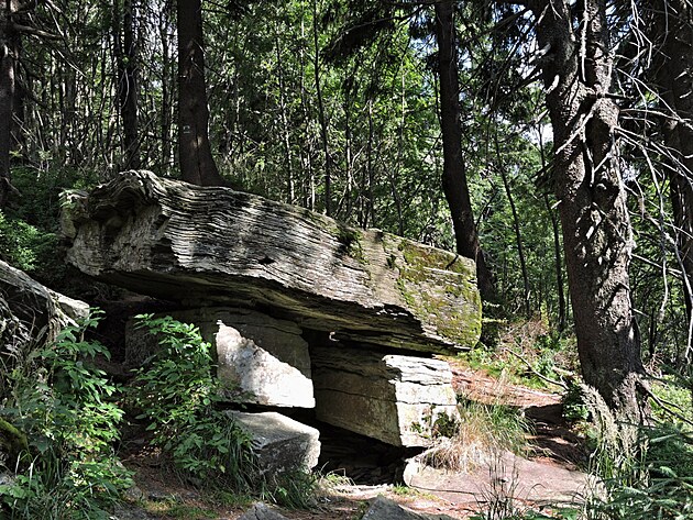 A pod Čertovým mlýnem na Vás čeká Čertův stůl. Jak asi vypadali ti, kteří tady za bouřky mastili karty, než je vyhnali trampové?