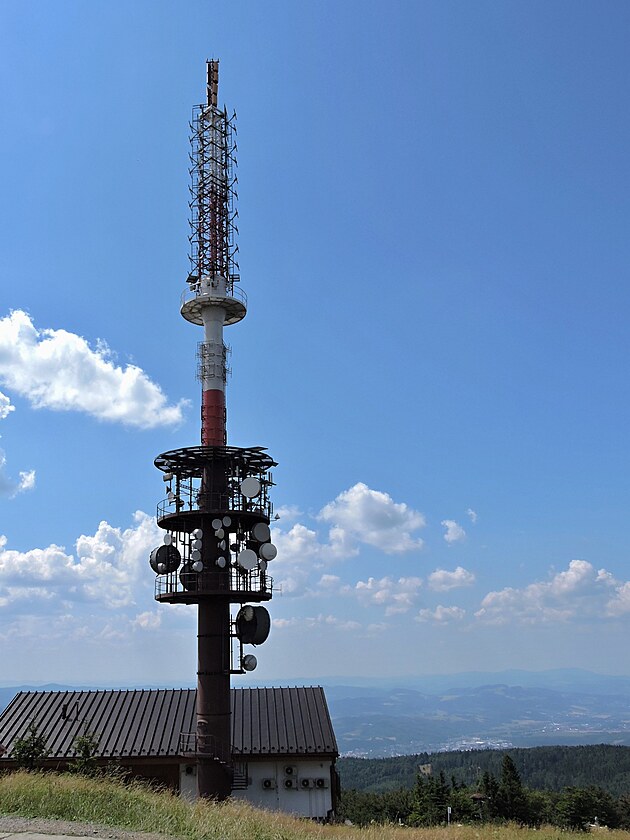A přímo vedle kostelíka stojí tenhle velký stožár. Kdo všechno díky němu předává a přebírá informace? Kdoví, možná i pakety tohoto blogu přesouvá tento nebo podobný anténní hrozen.
