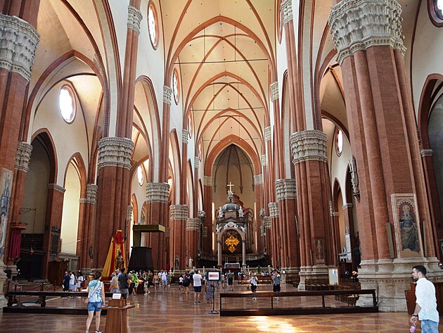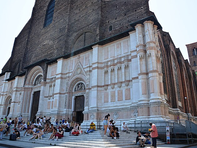 Bazilika San Petronio. Keď sa v roku 1390 začalo s jej výstavbou, plánovalo sa, že dosiahne väčšie rozmery než Bazilika sv. Petra v Ríme. Tento cieľ sa však nepodarilo naplniť. Dôvodom bolo údajne to, že sa tento nápad nepáčil pápežovi Piovi IV. A možno išlo len o nedostatok peňazí na jej dokončenie. V každom prípade, okolo roku 1650, keď dokončili hlavnú sieň (ktorej dĺžka je až 117 metrov), práce sa zastavili. Vonkajšia podoba baziliky tak zostala nedokončená až dodnes. Jej interiér je však nádherný a považovaný za jednu z najlepších ukážok gotického umenia v Taliansku.