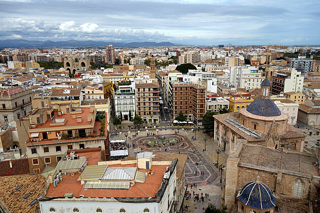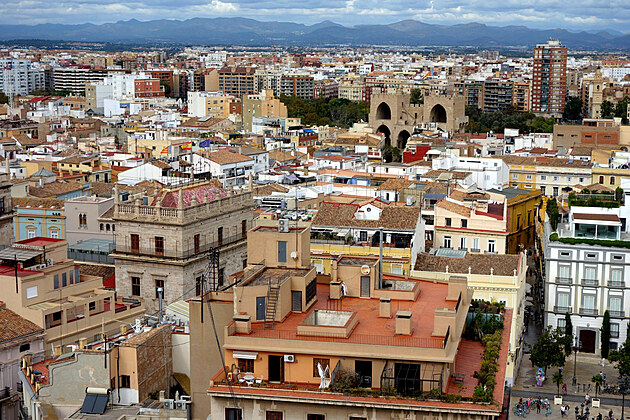 Druhá z dvoch zachovaných ochranných bášt mestskéhho pevnenia - Torres de Serranos (14. storočie) a výhľady z nej: