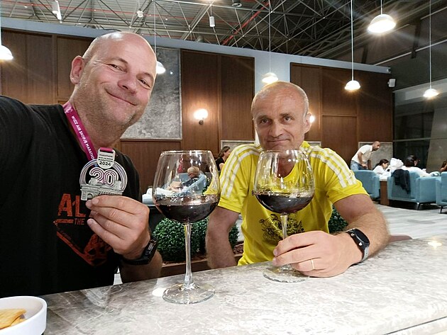 Tým Slovákom mal, alebo mohol ním byť Buldog (Dušan O.)! To je ten óptimisticky vyzerajúci muž v najlepších rokoch po mojej pravici 30 minút pred štartom 20. ročníka Skopje maratónu. Večer pred štartom už bolo ale takmer jasné, že maratón neabsolvuje. Mal silne zapálené chodidlo na ľavej nohe, ktoré ho trápilo už posledné 3 týždne. Mali sme však plán B!.. Ale to len akože. A ten znel: Buldog riadne vyštartuje, a ak to zvládne, tak za najbližším rohom sa zo štartového poľa nenápadne vyparí. Najťažšie pasáže maratónu strávi v najbližšej krčme kde sa bude psychicky pripravovať na záverečný finiš a vylaďovať niektoré taktické detaily (ako pooblievanie sa vodou atď. a pod.). Po tejto príprave sa potom nenápadne ako duch z ničoho nič objaví na trati v presne stanovenom čase a mieste (450 metrov pred cieľom) a do cieľa dobehne ako prvý...