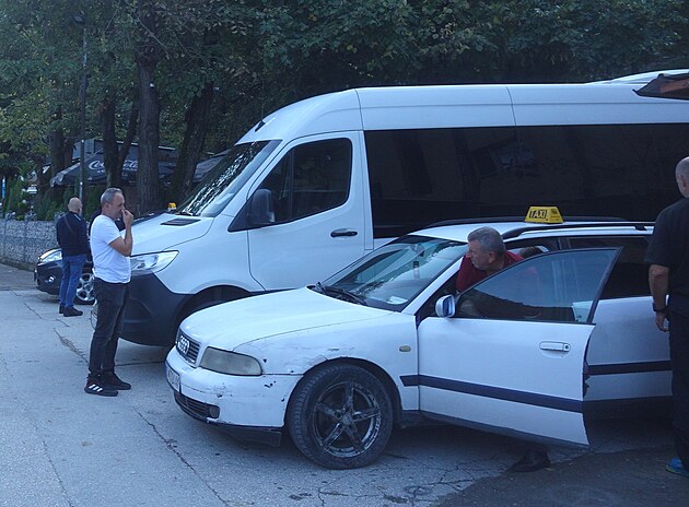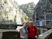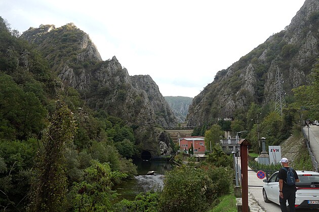 Do auta práve nastupuje náš taxikár. Na internete sme si prečítali, že z mesta sa do kaňonu dá dostať taxíkom za 10 eur. My sme mu ponúkli 15. Chcel 20, potom 17, napokon sa nechal „zlomiť“ na 15, keď zistil, že viac ako 15 mu nádame. Do kaňonu nás potom viezol po vedľajších cestách, aby nám ukázal, ako je to ďaleko!, a takmer nám pritom vynadal, že nám bolo ľúto mu dať 17 eur!!! Až na spiatočnej ceste sme zistili, že do kaňonu sa dalo ísť po rýchlostnej ceste. Ale on tak nespravil, radšej minul benzín navyše, aby obhájil tých 17 eur. Aby som mu však nekrivdil, treba povedať, že bol ochotný – sedel som vedľa neho a keď videl ako si z auta fotím niečo zaujímavé, tak vždy spomalil. A ešte jeden zážitok s týmto taxikárom: Keď sme prechádzali okolo budovy sídla severo-macedónskej vlády, a ja som sa pýtal, čo je to za budovu, povedal, že tam býva mafia! Pokúsil som sa mu vysvetliť, že pokiaľ viem, tak v Macedónsku tá „mafia“ prišla k moci demokratickou cestou, že moc jej dali ľudia, že predsa banda zlodejov do ich vlády nespadla z neba! Ale žiaľ mi zrejme nerozumel. A keď rozumel, tak to, čo som sa mu povedal, považoval za blud. Ale zato nám na náš dotaz ozrejmil, že socha, okolo ktorej sme prechádzali, patrí nejakému gerojovi (hrdinovi) na ľošadi!... (koňovi).