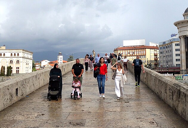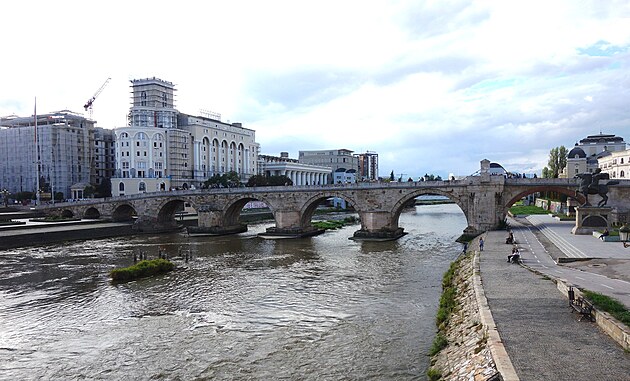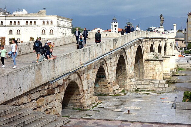 Kamenný most (tiež Dušanov) – ďalší symbol mesta. Vskutku nádherný most most. Most s 13 oblúkmi je cez 200 metrov dlhý a 6 metrov široký. Klenie sa cez rieku Vardar a prepája staré (moslimské) mesto s novým (kresťanským). Vek mosta nie je presne známy. Jedna teória hovorí, že pochádza už zo 6. storočia, druhá sa prikláňa skôr k 15. storočiu. Ja by som povedal, že bol postavený v 14. storočí, ale presný rok dostavby si povedať naozaj netrúfam...
