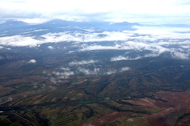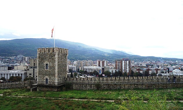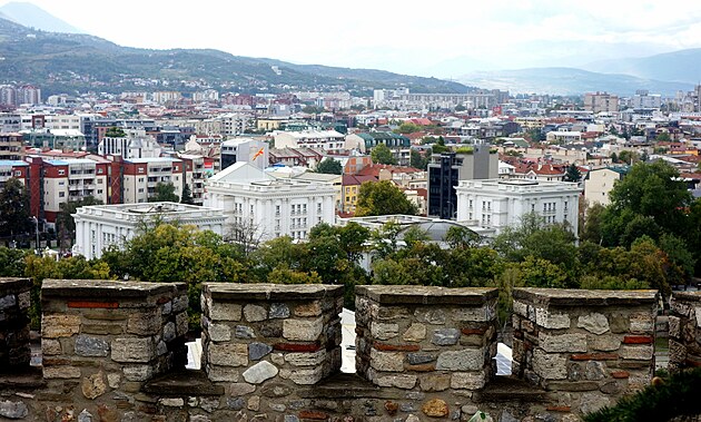 Vzadu, vpravo hore v hmle leží metropola Severného Macedónska.