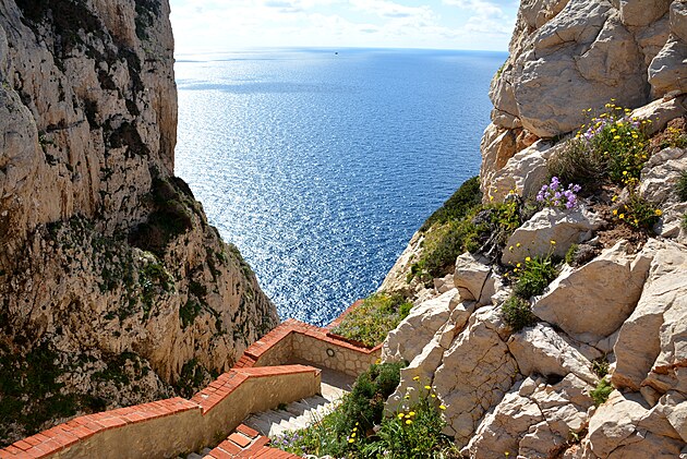 Do hĺbky 200 metrov vás dovedie schodisko Escala de Cabriol Grotta so 625 schodmi, ktoré končí nad jaskyňou Gotta di Nepttuno.