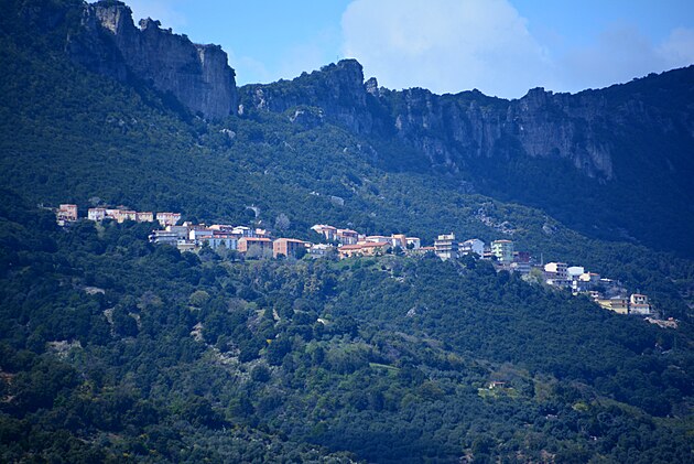 Dedinka Baunei – medzi zálivom a pohorím Gennargentu.