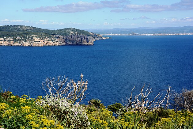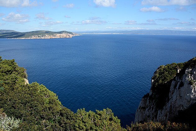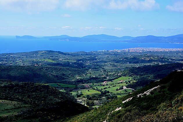 Vľavo hore je Capo Caccia a vpravo je Alghero.