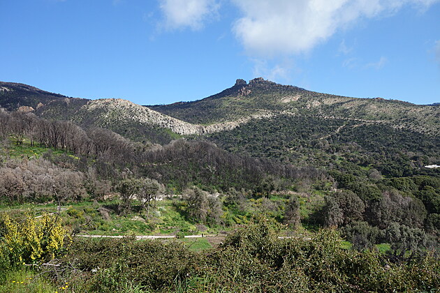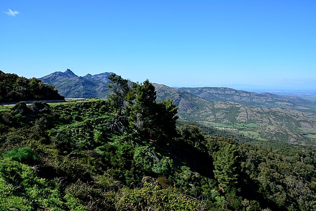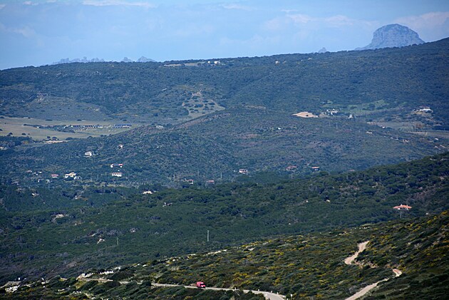 V pohorí Gennargentu, sa nachádza aj najvyššia hora ostrova - Punta La Marmora (1.834 m.n.m) – vpravo hore. Samostatne nevyniká, ale pohorie ako celok sa nad okolitou krajinou vypína ako obor, čo bude zjavné z ďalších foto.