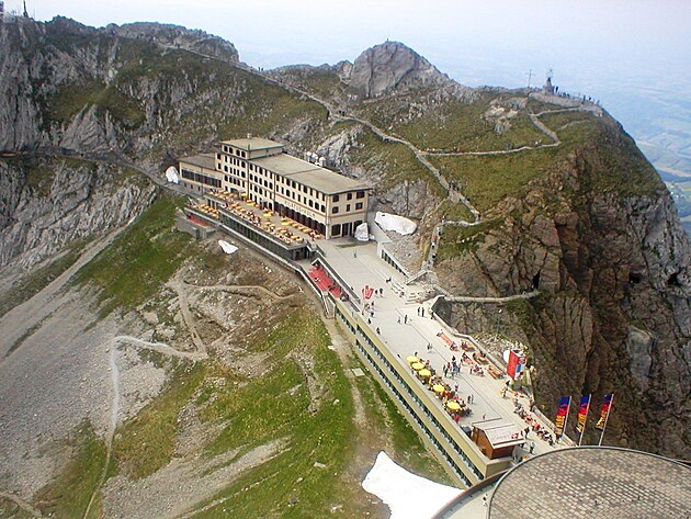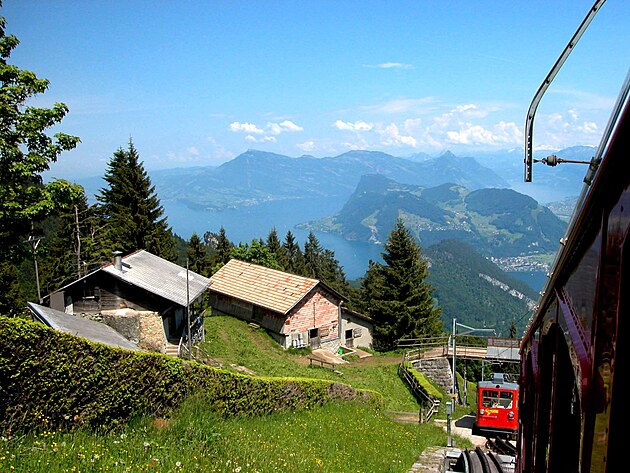 Zubačkou na Pilatus (2.128); údajne najstrmším zubačkovým stúpaním na svete. V každom prípade, so sklonom miestami až 48 %.