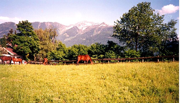 Tyrolsko - máj 1997 - osada Vomperberg ( 946 m.n.m) nad dedinkou Vomp, neďaleko mestečka Schwaz.