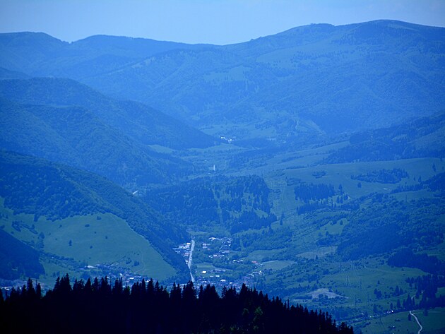 Horný koniec regiónu Turiec & Lučanská Malá Fatra (vzadu vľavo) a vpravo Krivánska M. Fatra.