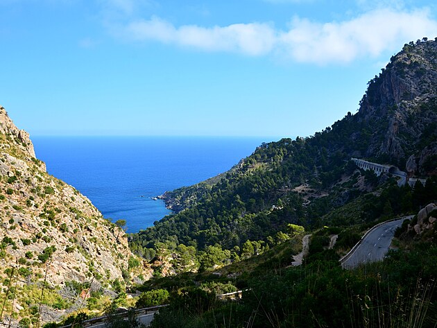 Nachádzame sa na juhozápade ostrova a pomaly pokračujeme autom väčšinou pobrežnou výhliadkovou cestou MA 10 na severovýchod ostrova cez takmer 90 kilometrov dlhé pohorie Sierra de Tramuntana vystupujúce zo Stredozemného mora.
