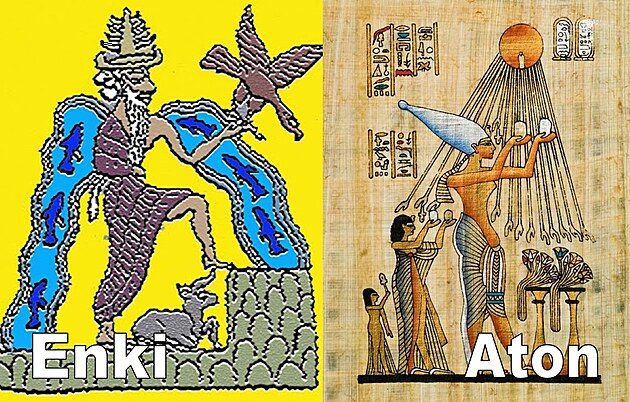 Kain, ktorý zabil svojho mladšieho brata Ábela, bol prvým synom Adama a Evy. Eva však zároveň povedala Adamovi, že Kainov otec je 'Pán'. 'Pánom' je myslený Adon (Adoni/Aton) a Adon bol sumerský boh múdrosti, umení a podzemného oceánu Abzu Enki. Enki bol v staroveku stotožňovaný so Saturnom a hadom v rajskej záhrade Satanom. Enki povedal, že je hlavou medzi všetkými vládcami, že je otcom všetkých cudzích zemí. Enki je spájaný s kráľom Saturnom, Kronosom v gréckej tradícii a so Satanom - diablom, ktorého označenie (Satan) je úpravou slova Saturn. Enki = Saturn = Satan = Adon = Aton, staroegyptský boh slnka.